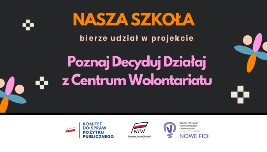 Miło nam poinformować, że nasza szkoła bierze udział w projekcie POZNAJ, DECYDUJ, DZIAŁAJ z Centrum Wolontariatu realizowanym przez Bielskie...