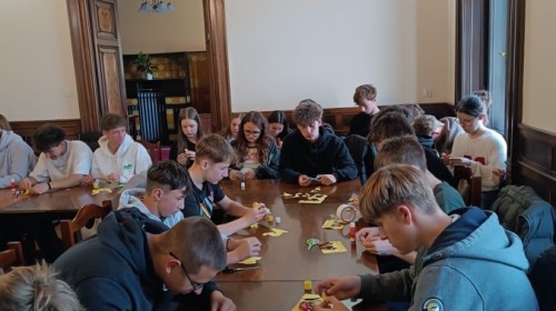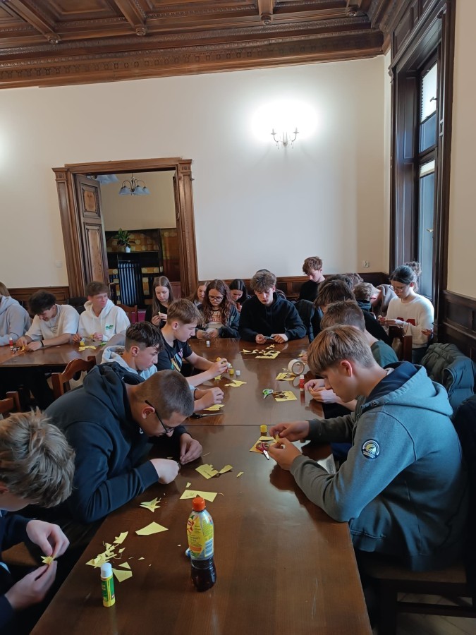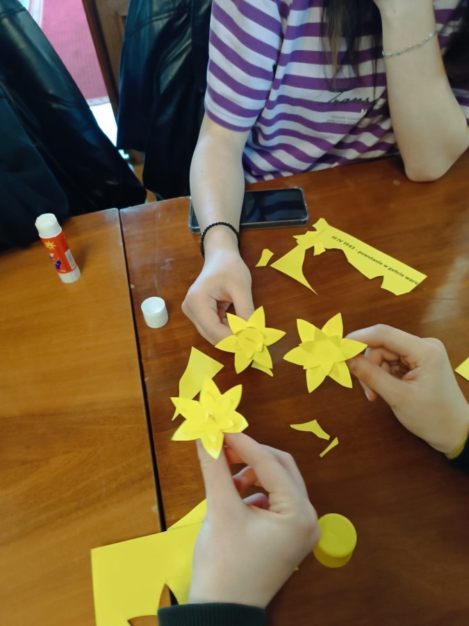 22 kwietnia 2026 r. klasa 1d uczestniczyła w warsztatach edukacyjnych przygotowanych przez Pedagogiczną Bibliotekę Wojewódzką w Bielsku-Białej w ramach Akcji Żonkile, prowadzonej we współpracy z Muzeum POLIN. Uczniowie mieli możliwość poznać historię powstania w getcie warszawskim, a także zastanowić się nad znaczeniem pamięci, odwagi i solidarności.