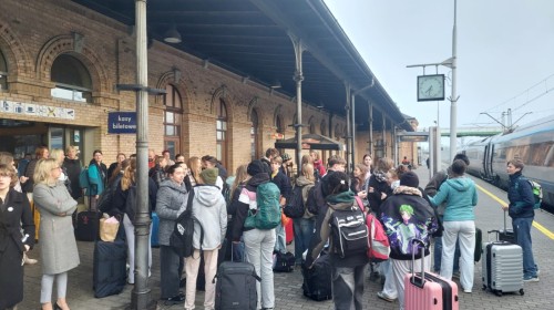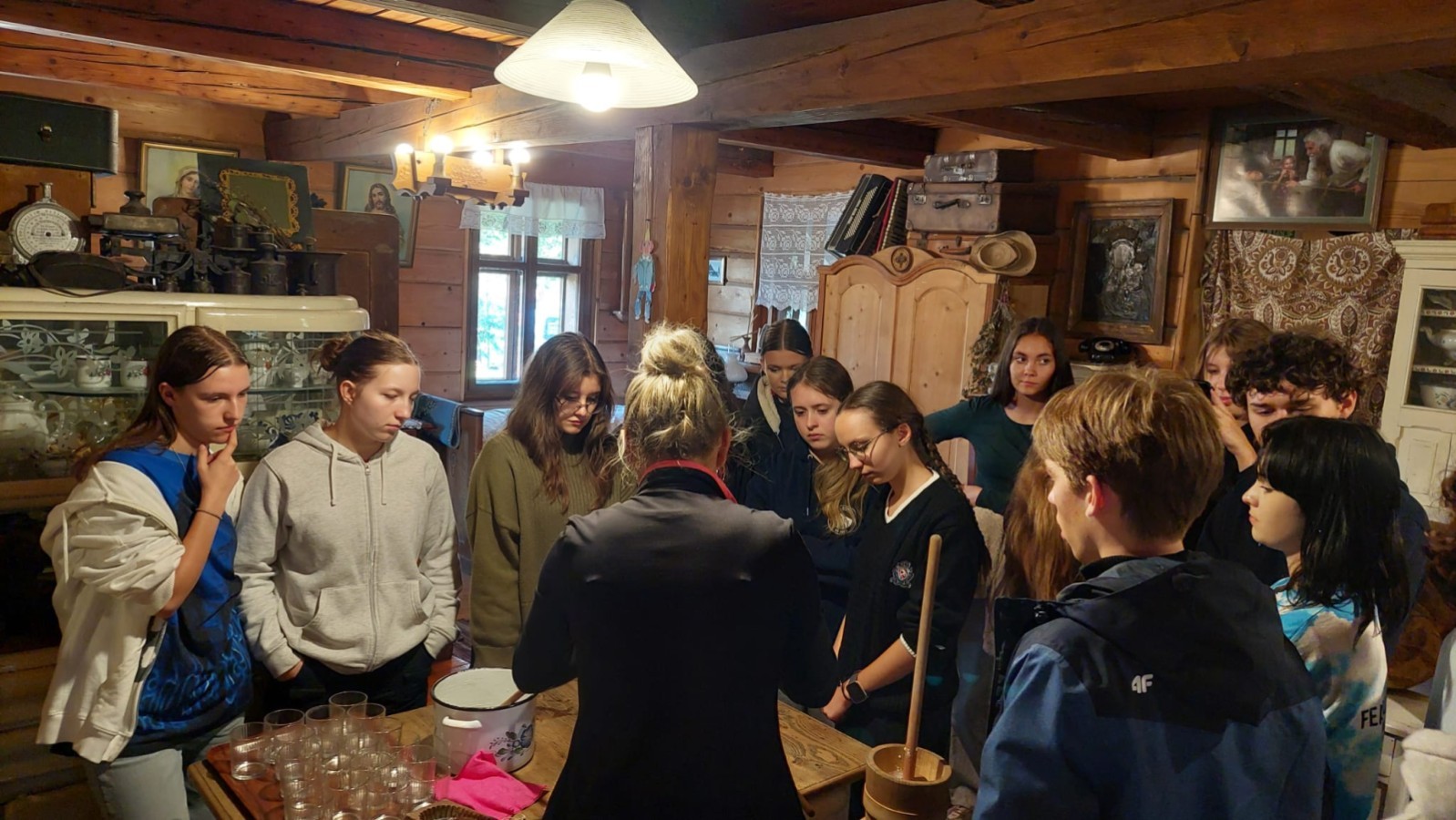 z przewodnikiem na wycieczkę w góry. Najpierw wyjechali kolejką gondolową na Szyndzielnię, a następnie przy kubku gorącej herbaty grali w gry planszowe i karty w schronisku. Po południu wszyscy uczestnicy wymiany wraz z nauczycielami i rodzicami spotkali się w auli szkolnej, aby zakończyć cały projekt imprezą pożegnalną. Śmiechowi i zabawom nie było końca i trudno było rozstać się następnego dnia na dworcu głównym w Bielsku-Białej.