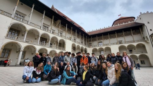 w warsztatach: ubijania masła, oddzielania mleka od śmietany, robienia sera. Uczniowie poznali tradycje pieczenia chleba, zapoznali się z maszynami, które kiedyś były używane w polskich gospodarstwach. Nie obyło się bez karmienia zwierząt w typowej polskiej zagrodzie. Kolejnego, trzeciego dnia wymiany, grupa polsko-niemiecka wraz z opiekunami udała się do obozu koncentracyjnego Auschwitz-Birkenau, gdzie wzięła udział w oprowadzaniu po obozie, jak i w warsztatach o losie dzieci w obozie. Warsztaty prowadzone w języku angielskim bardzo zaangażowały uczniów z obu szkół. Tworzono plakaty i robiono streszczenia z przedstawionego materiału. Weekend w rodzinach obfitował w liczne, ciekawe wycieczki krajoznawcze do Wrocławia, Krakowa, Pszczyny, Żywca. W poniedziałkowy poranek, pomimo niesprzyjającej pogody, uczniowie udali się wraz