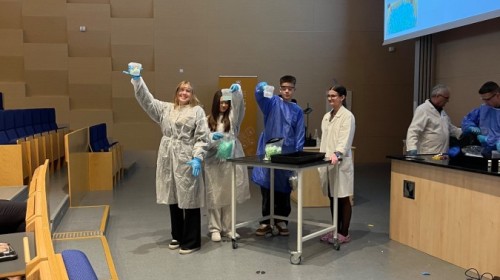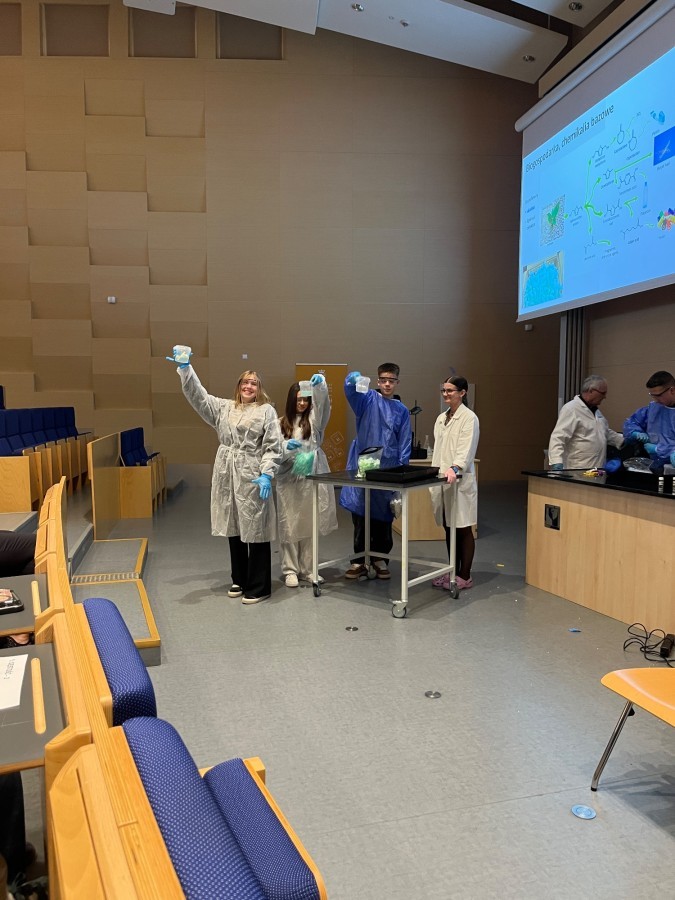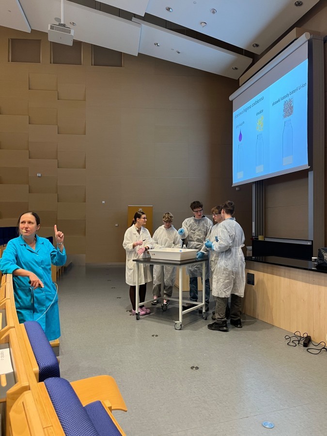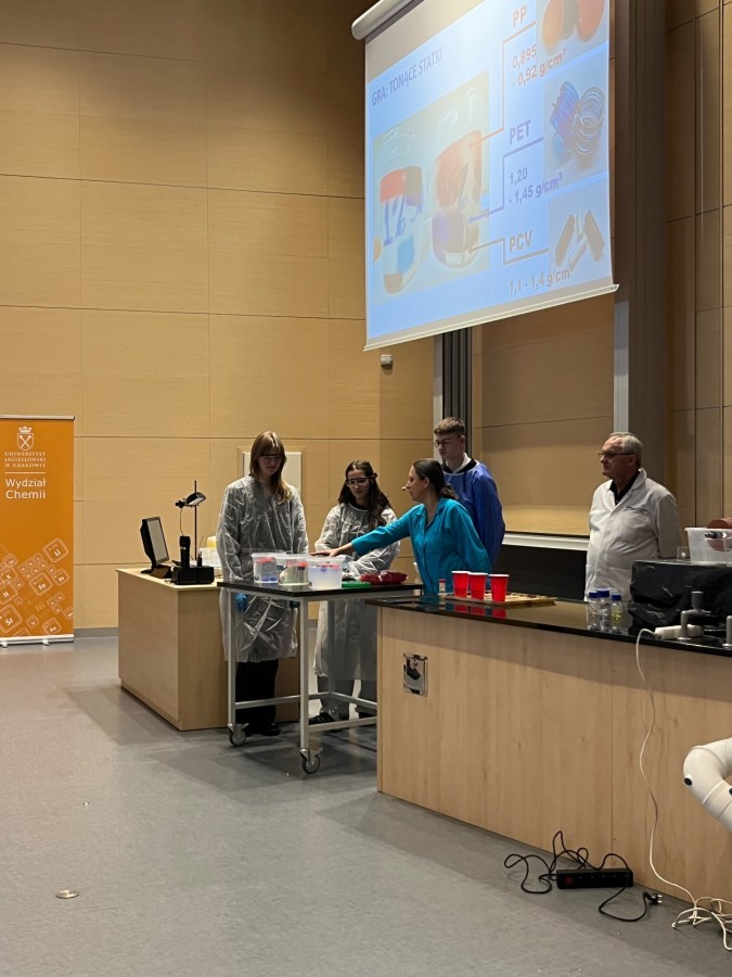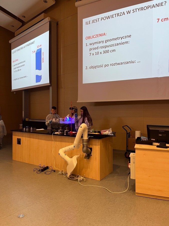 Doświadczenia wykonywane były z pomocą i opatrzone były komentarzem do zachodzących zjawisk, w tym do zagadnień znajdujących się w podstawie programowej z chemii w zakresie rozszerzonym, realizowanych od szkoły podstawowej do liceum. Wysłuchaliśmy informacji o naukowych aspektach recyklingu, pozyskiwania, przetwarzania surowców oraz magazynowania energii – czyli życia codziennego. Słuchaczom zostały wyjaśnione zagadnienia, dlaczego zrównoważona produkcja oraz gospodarka o obiegu zamkniętym są ważne i przynoszą wiele korzyści dla klimatu, środowiska oraz zdrowia ludzi i innych organizmów.