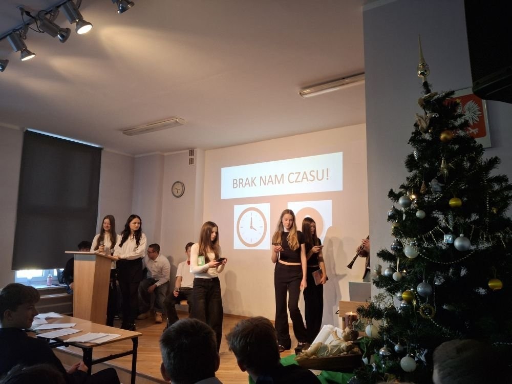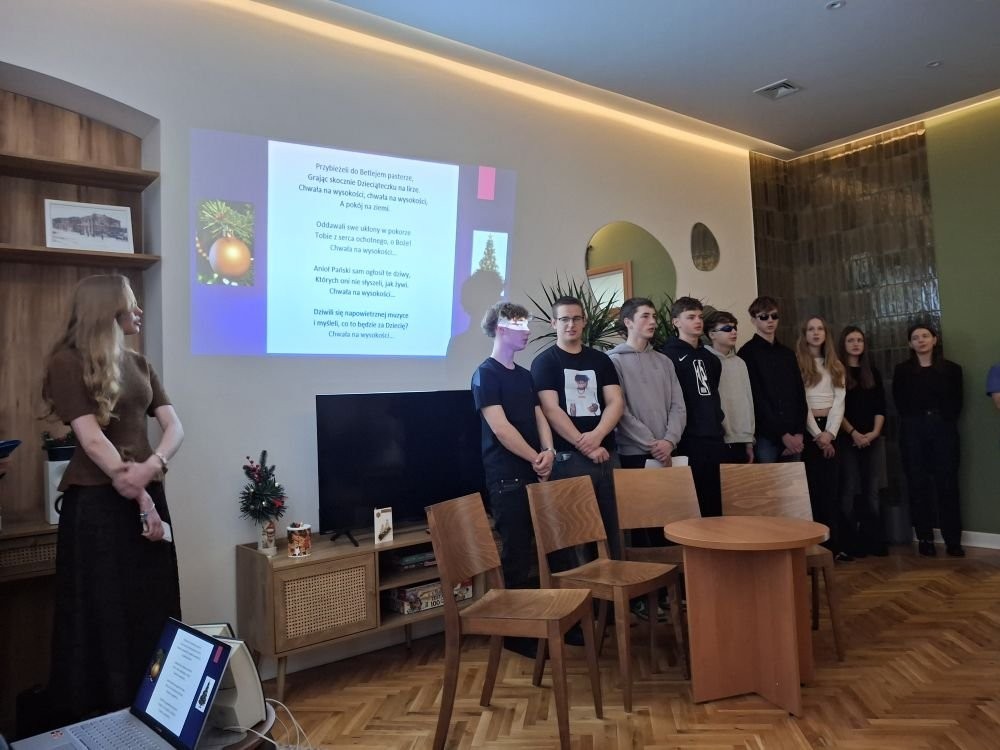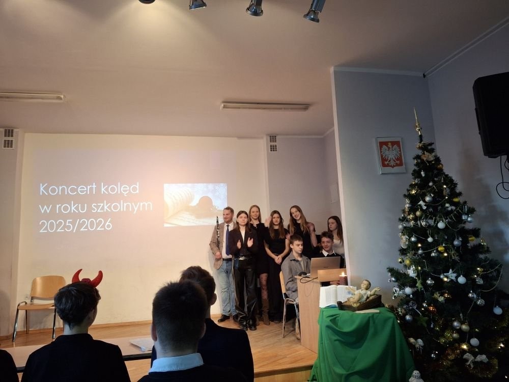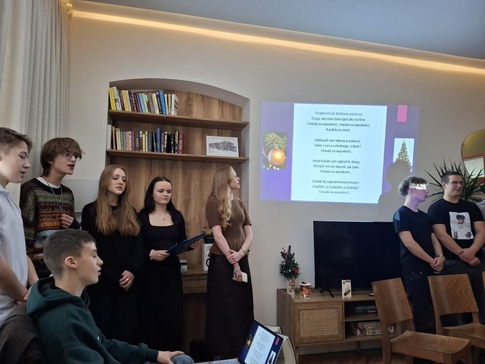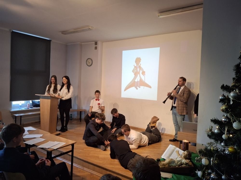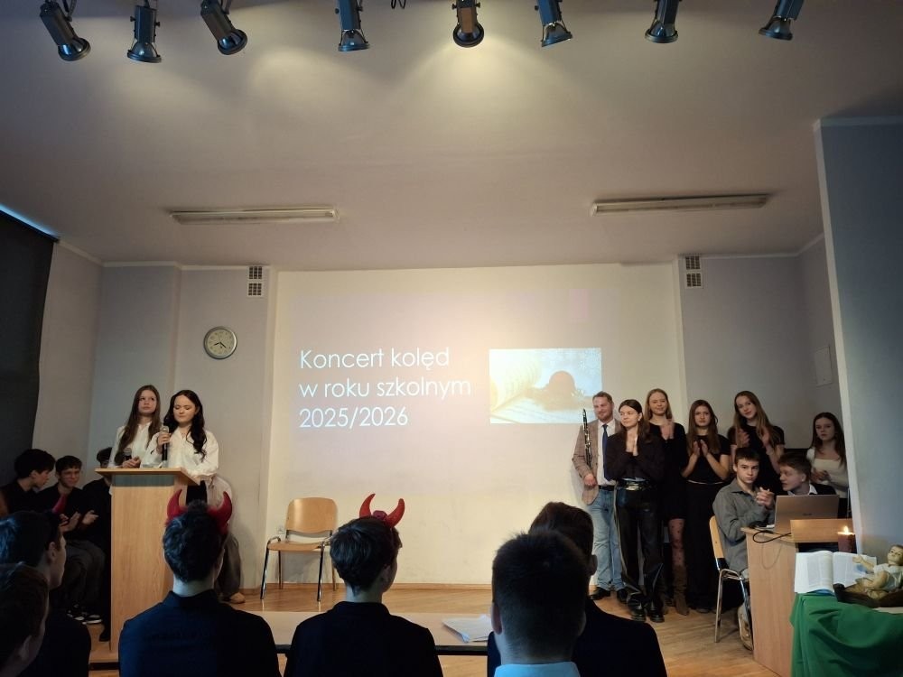 W naszym liceum w przedświąteczny piątek, 19 grudnia 2025 r., społeczność naszej szkoły obejrzała przedstawienie jasełkowe przygotowane przez uczniów klasy 1D i przyjaciół pod opieką ks. Grzegorza Jabłonki i p. Jonasza Oświęcińskiego.