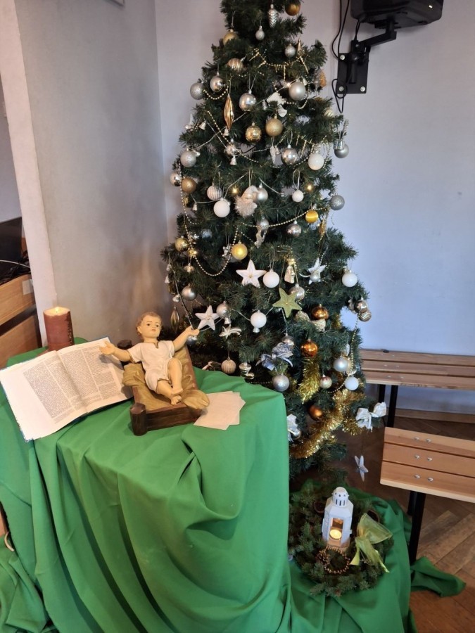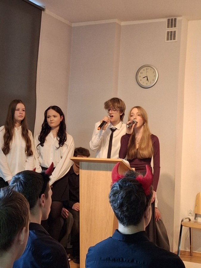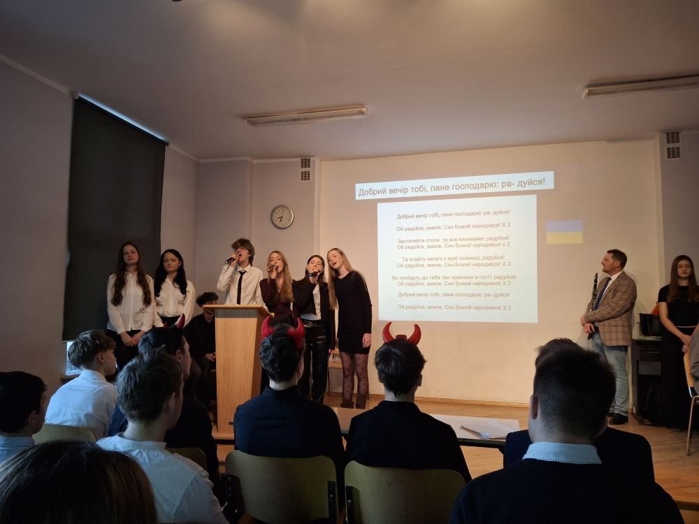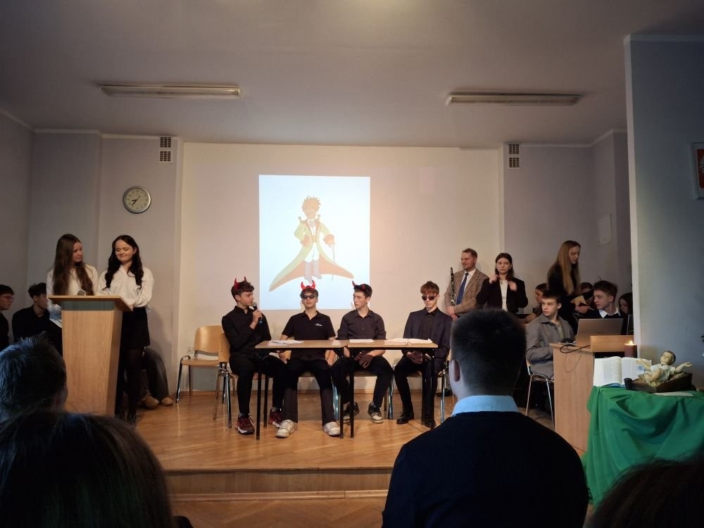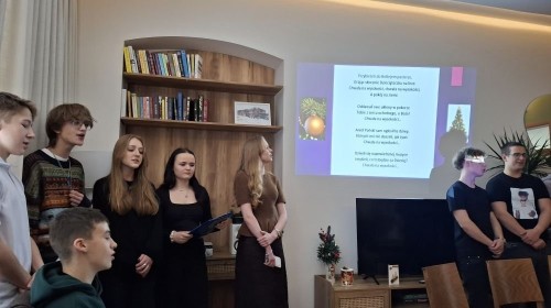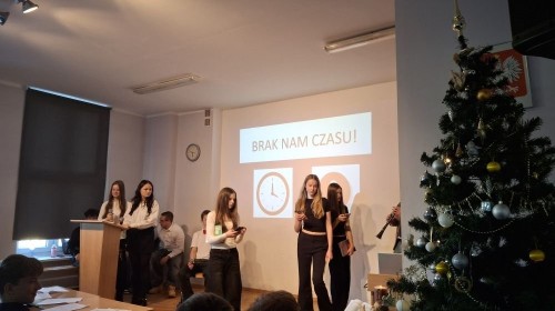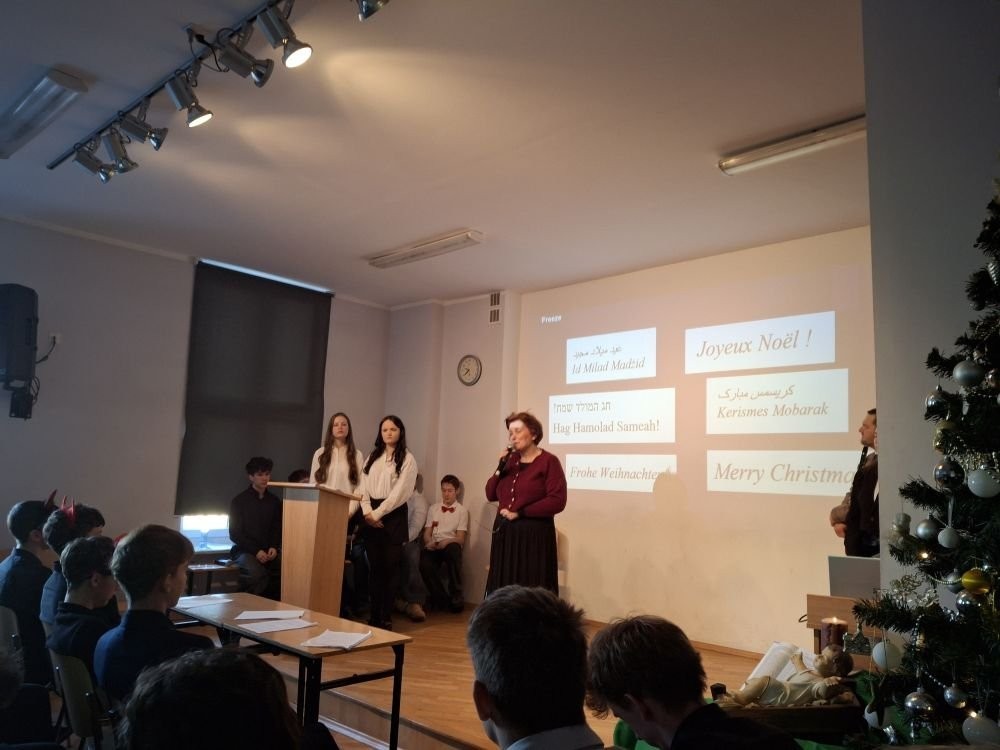 W naszym liceum w przedświąteczny piątek, 19 grudnia 2025 r., społeczność naszej szkoły obejrzała przedstawienie jasełkowe przygotowane przez uczniów klasy 1D i przyjaciół pod opieką ks. Grzegorza Jabłonki i p. Jonasza Oświęcińskiego.