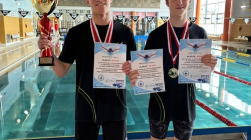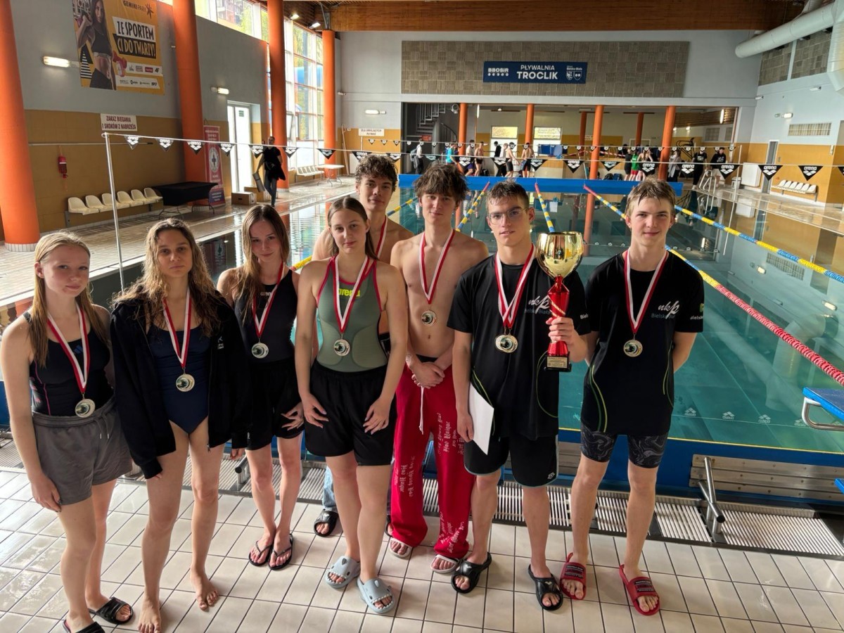 Klaudia Jarosz, Zosia Walaszczyk i Maja Górecka wywalczyły w pięknym stylu 2 miejsce. Sztafeta chłopców w składzie: Piotr Kastura, Marcin Bożek, Mikołaj Duhl i Valerii Moiseienko walczyła do końca ostatecznie zajmując także 2 miejsce. Padły trzy rekordy szkoły ustanowione przez uczniów klasy pierwszej. Valerii Moiseienko pobił rekord na 100 zmienny zostając Mistrzem Miasta i na 50 grzbietowy gdzie również triumfował.Piotr Kastura wygrał konkurencję 50 klasyczny pobijając rekord szkoły w tej konkurencji. Maja Górecka zdobyła indywidualnie dwa krążki, srebrny na 50 klasyczny i brązowy na 50 grzbietowy.