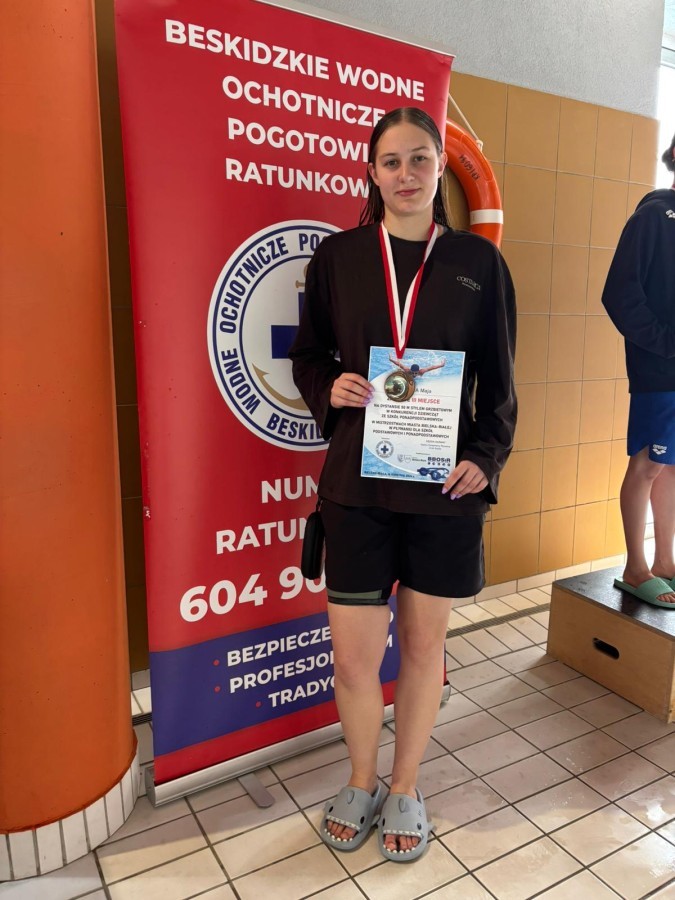 16.04.2026r. odbyły się Mistrzostwa Miasta Szkół Ponadpodstawowych w pływaniu. Waleczna reprezentacja szkoły w nieco okrojonym składzie wywalczyła drużynowo 2 miejsce. Nasze sztafety spisały się medalowo. Sztafeta dziewcząt w składzie: Karolina Bochen