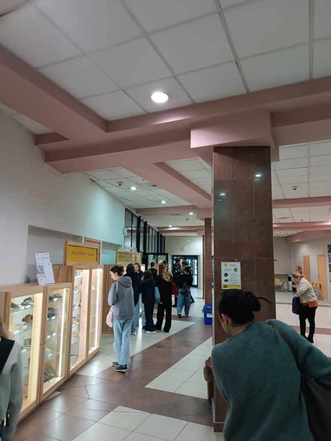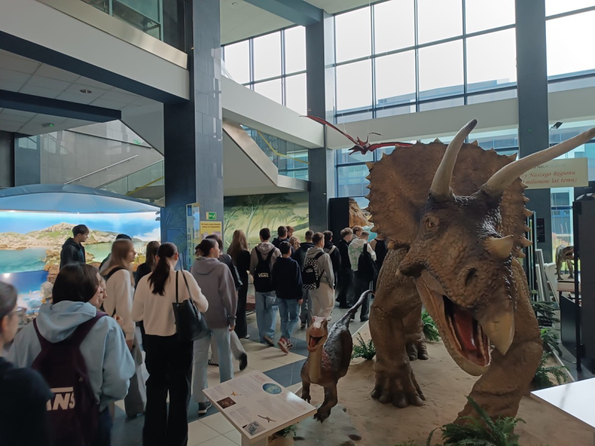 W dniu 20.11.25 uczniowie klasy I zwiedzali Muzeum Ziemi Wydziału Nauk o Ziemi Uniwersytetu Śląskiego oraz uczestniczyli w wykładzie dr Andrzeja Boczarowskiego. Wykład był poświęcony zmianom klimatu. Uczniowie mieli okazję zapoznać się z najważniejszymi zjawiskami przyrodniczymi wpływającymi na zmiany klimatu oraz zastanowić się nad kwestią znaczenia działalności człowieka w tym kontekście.