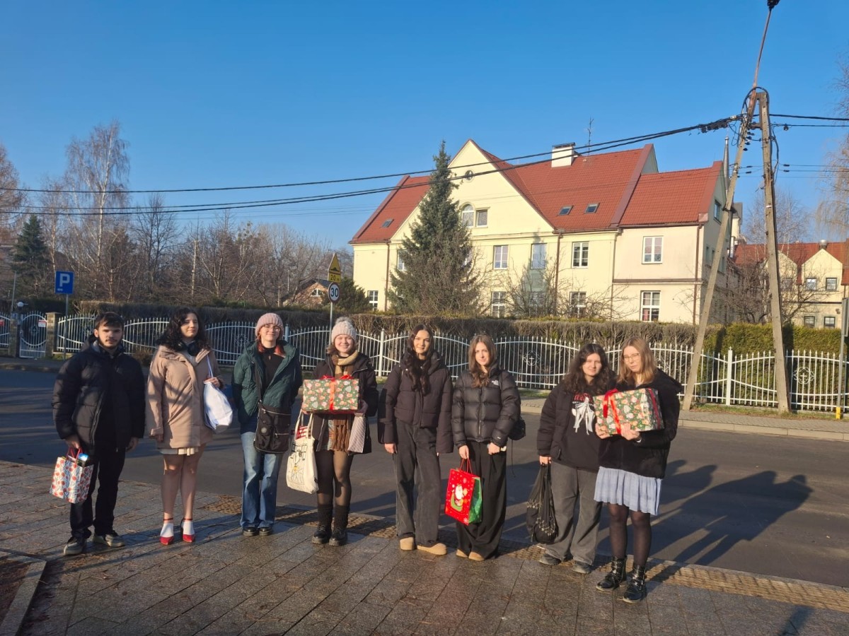 19 grudnia uczniowie osobiście dostarczyli przygotowane paczki, a podczas wizyty spotkali się z podopiecznymi i wspólnie kolędowali, tworząc ciepłą, świąteczną atmosferę. To wyjątkowe spotkanie pełne uśmiechu i życzliwości na długo pozostanie w pamięci zarówno uczniów, jak i mieszkańców DPS.