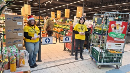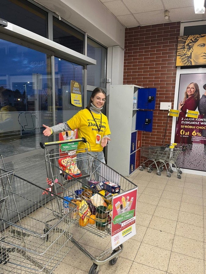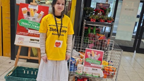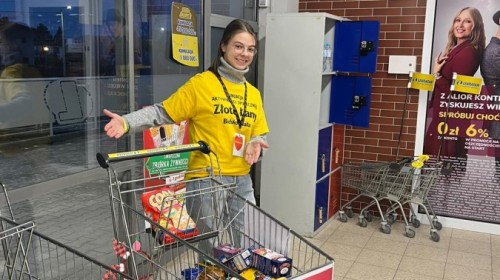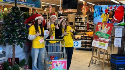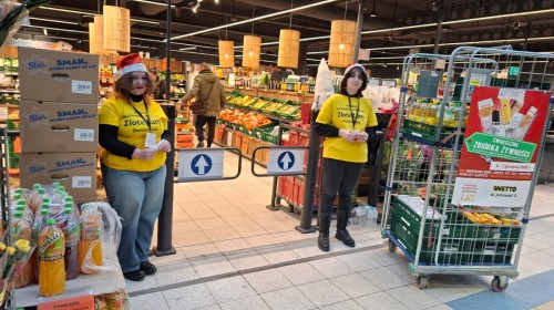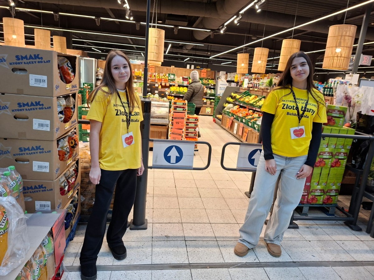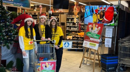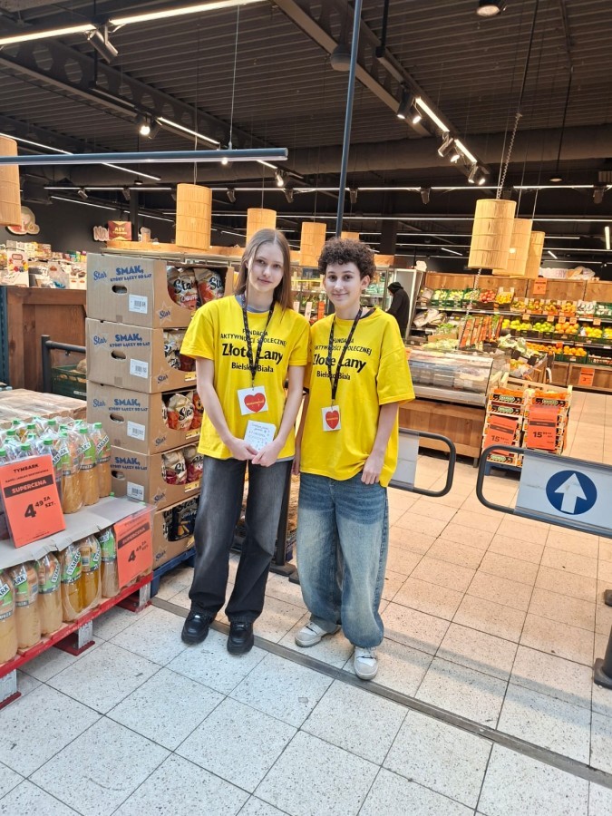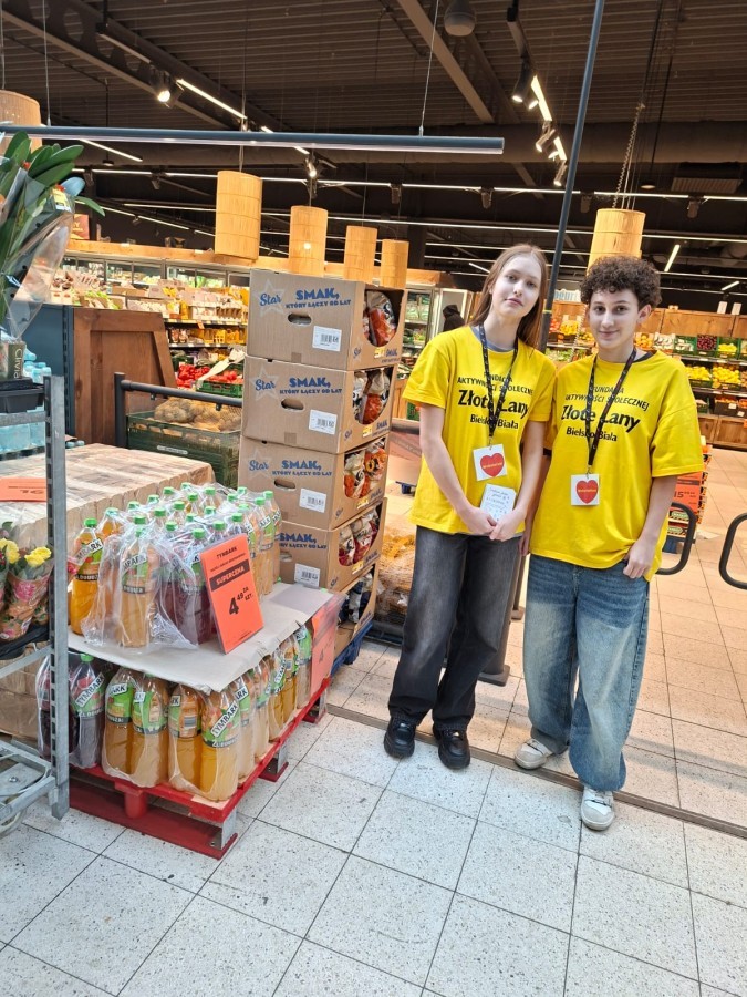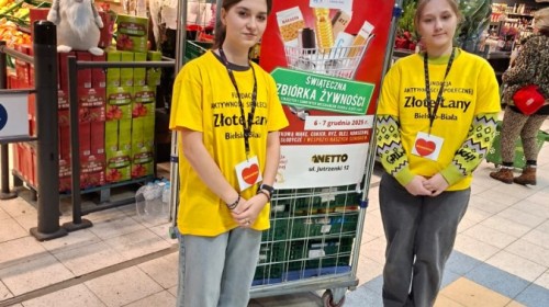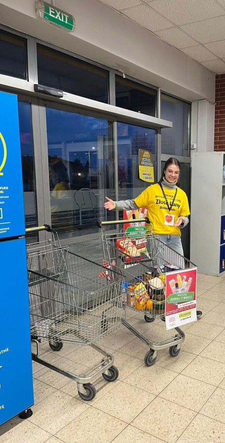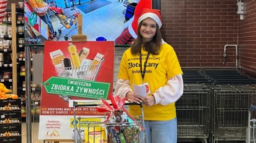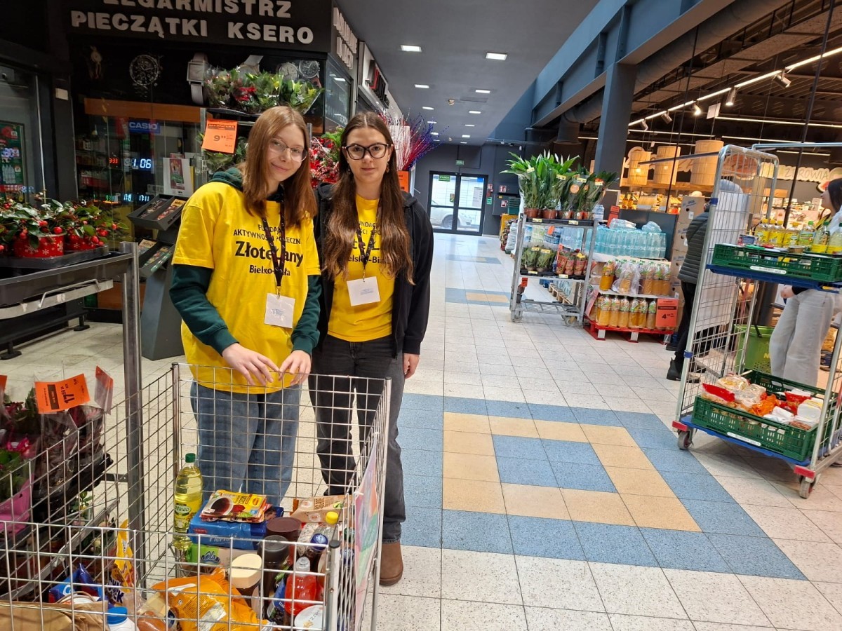 6 i 7 grudnia grupa wolontariuszy z naszej szkoły wzięła udział w Świątecznej Zbiórce Żywności, zorganizowanej przez Fundację Aktywności Społecznej oraz Spółdzielnię Mieszkaniową Złote Łany. Dzięki ogromnemu zaangażowaniu uczniów i mieszkańców udało się zebrać około 900 kg różnorodnych artykułów spożywczych – zarówno produktów pierwszej potrzeby, jak i tych o wyjątkowym, świątecznym charakterze. Zebrane dary pozwolą na przygotowanie około 150 paczek, które trafią do najbardziej potrzebujących seniorów z osiedla Złote Łany. Zbiórka odbywała się w osiedlowych placówkach: Netto przy ul. Jutrzenki 12 i Lewiatan przy ul. Żywieckiej 95