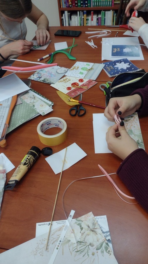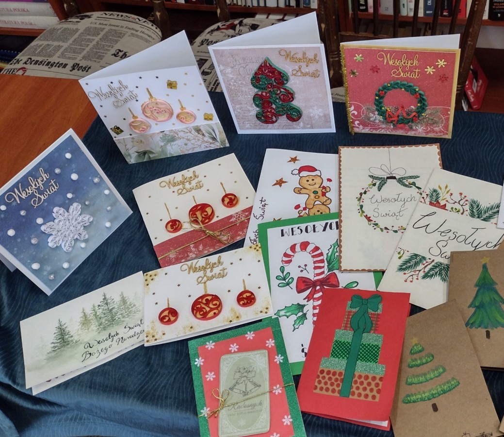 Świąteczny nastrój w bibliotece zaczęliśmy tworzyć już w listopadzie dzięki warsztatom rękodzieła, podczas których powstawały kartki dla seniorów z naszego miasta. Akcję zainicjowało Centrum Seniora w Bielsku-Białej. Młodzież przygotowała wyjątkowe kartki, które z pewnością sprawią radość obdarowanym – dziękujemy za Wasze zaangażowanie!