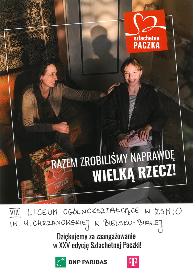 Społeczność naszego liceum po raz kolejny pokazała, jak wielką moc ma wspólne działanie i otwarte serca. W ramach akcji Szlachetna Paczka obdarowaliśmy dwie Rodziny – Pana Kamila oraz Panią Nikolę.