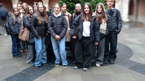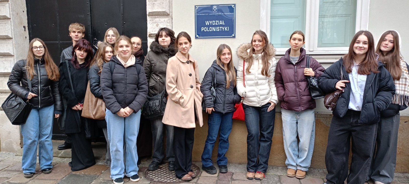 9.12. w ramach rozpoczętej współpracy z Wydziałem Polonistyki UJ 15 uczniów z 3b i 4b uczestniczyło w wykładzie profesora K. Biedrzyckiego o literaturze drugiego obiegu, a następnie studentki Katedry Teorii Komunikacji oprowadziły ich po różnych siedzibach Wydziału — od Ingardena do "matecznika" na Gołębiej. Dzień zakończył wykład dla II roku: "Wstęp do teorii komunikacji" dr hab. B. Drabik. A potem spacer na Wawel, nad Wisłę i na pożegnanie Rynek z kiermaszem świątecznym.