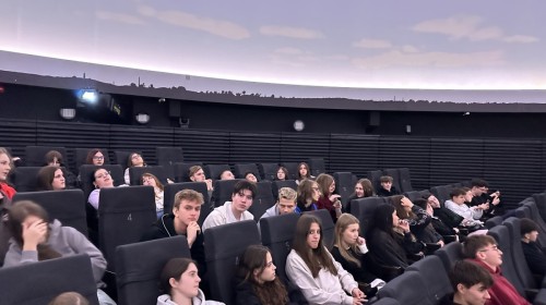 Uczniowie rozpoczęli dzień od zajęć dydaktycznych w sali projekcyjnej, gdzie obejrzeli pokaz zatytułowany „Fascynujący kosmos”, podczas którego poznali odpowiedzi na takie pytania, jak: co rządzi ruchami planet, jak mierzy się odległości we Wszechświecie oraz gdzie należy szukać odległych galaktyk.