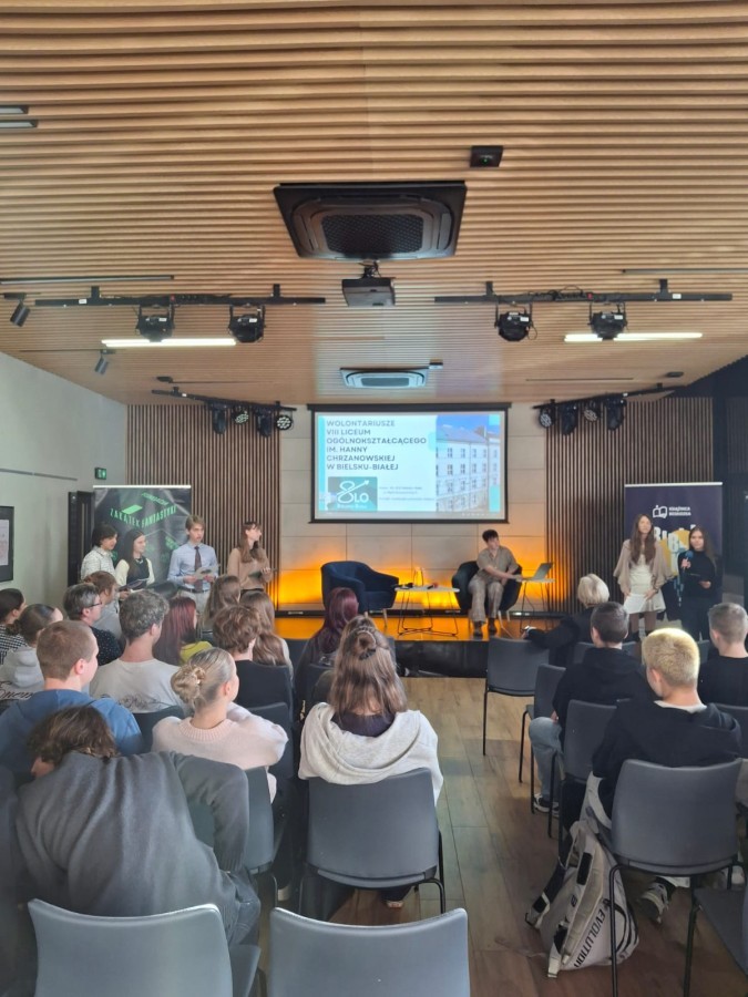 4 grudnia grupa wolontariuszy z naszego liceum miała zaszczyt uczestniczyć w drugich Targach Wolontariatu w Bielsku-Białej, zorganizowanych w ramach projektu „Centrum Wolontariatu Młodzieży w Bielsku-Białej – odpowiedź na realne potrzeby młodych!”. Spotkanie rozpoczęło się od prezentacji założeń projektu oraz podsumowania trzech lat działalności Centrum Wolontariatu Młodzieży. Podsumowania dokonały: dr Paulina Żmijowska – Koordynator Centrum Wolontariatu Młodzieży i Pełnomocnik Prezydenta Miasta ds. Osób Młodych oraz dr Dagmara Mika – Prezes Fundacji Edukacji Pozaformalnej w Bielsku-Białej. Następnie nasi wolontariusze wysłuchali prelekcji dr Iwony Kłóski pt. „Znaczenie wolontariatu w życiu obywatelskim”. Kolejnym punktem programu były prezentacje instytucji działających w obszarze wolontariatu na terenie Bielska-Białej. Nasi wolontariusze mieli okazję zaprezentować również akcje prospołeczne podejmowane przez społeczność VIII Liceum Ogólnokształcącego, co spotkało się z dużym zainteresowaniem. Na zakończenie młodzież wzięła udział w kreatywnych warsztatach „Wolontariat w kulturze fantastycznej”, które poprowadził Daniel „Ambroży” Soszka z Fundacji Zakątek Fantastyki. Udział w targach był dla naszych wolontariuszy okazją do wymiany doświadczeń, zdobycia nowych inspiracji oraz pokazania, jak ważną rolę odgrywa wolontariat w życiu młodych ludzi.