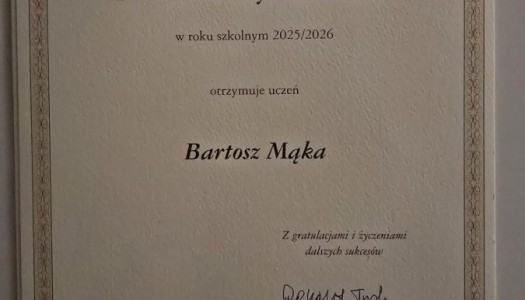 Z ogromną dumą i radością informujemy, że uczeń klady 2 C Bartosz Mąka został uhonorowany Stypendium Prezesa Rady Ministrów za uzyskanie naj...