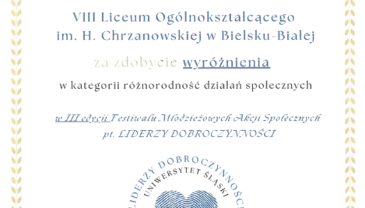 Z dumą informujemy, że nasza szkoła otrzymała wyróżnienie w kategorii „Różnorodność działań społecznych” podczas III edycji Festiwalu Młodzi...